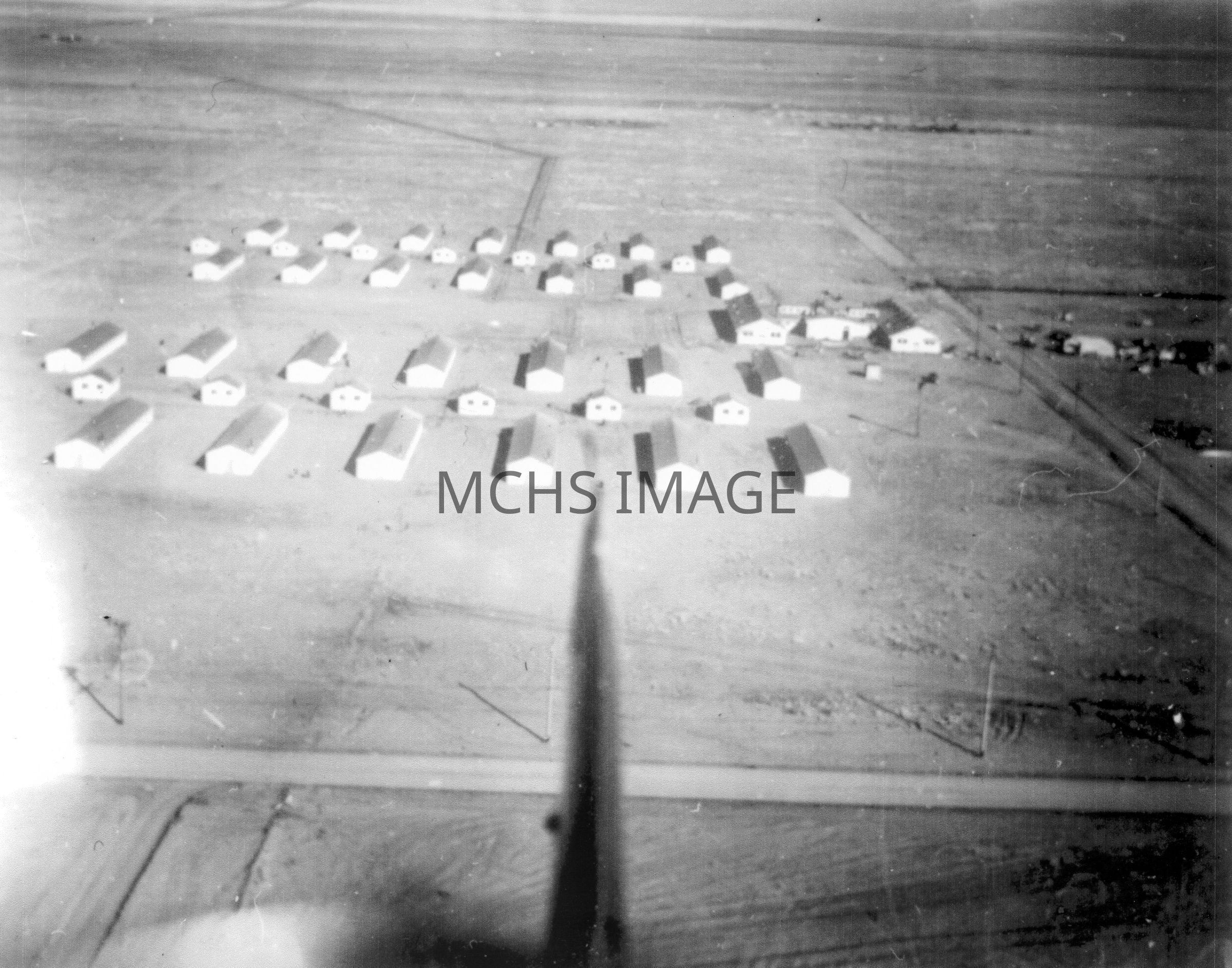 Aerial view of Barracks, at Kingman Army Air Field.
