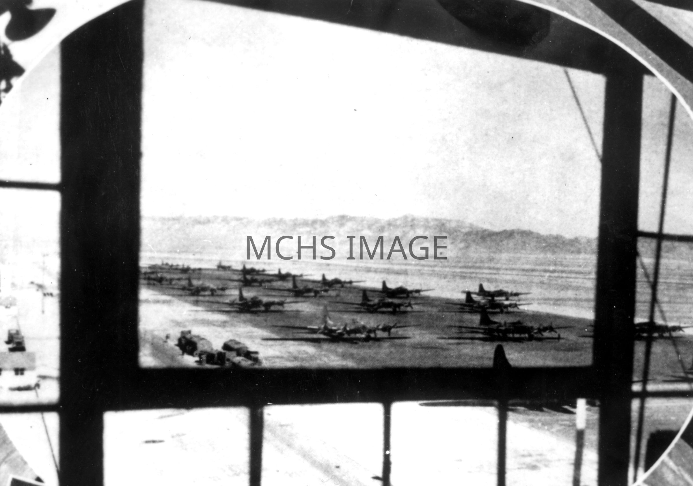 Aircraft on Field at Kingman Army Air Field. Note: Photo taken from main tower with Peacock Mountains in background.Collection