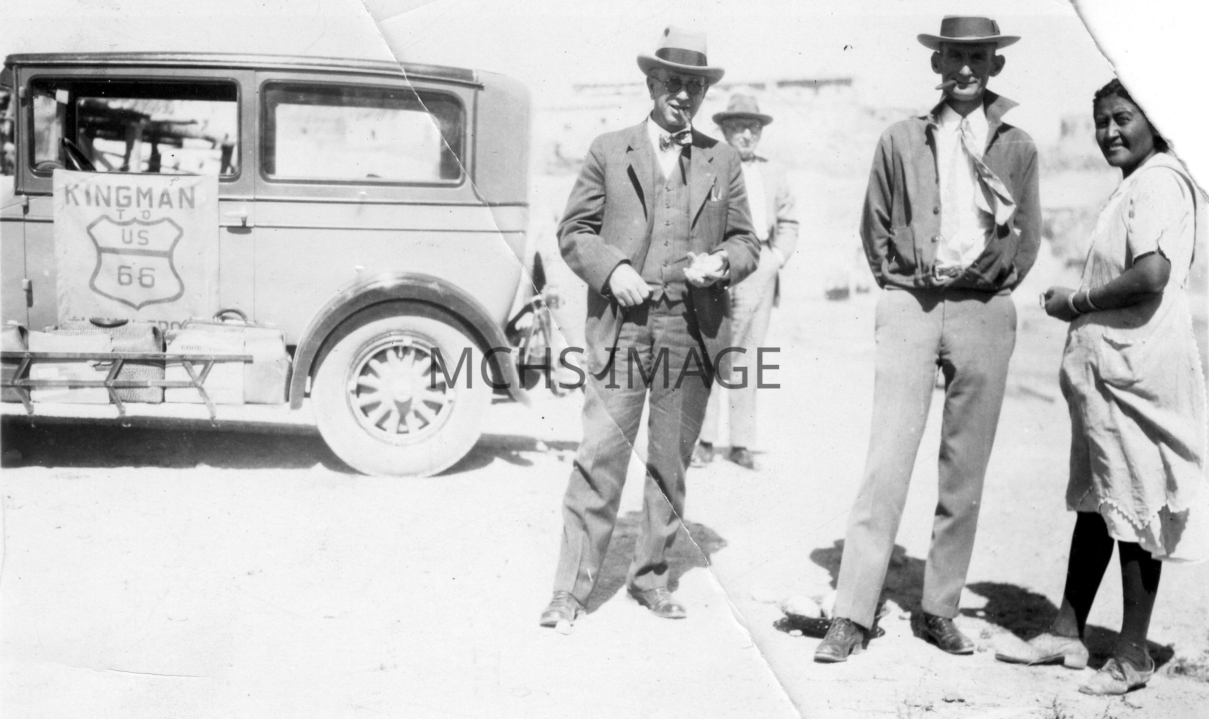 Anson Smith and Arthur Black on Route 66 Trip to Albuquerque. The Santa Fe Station, Alavradio is in the background. October 1927.Collection