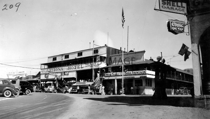 Photo of Arizona Hotel, with Highway 66 in foreground.
