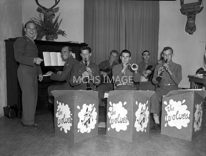 Army Air Field Band, standing left of Piano is Sgt. Slick Cryer.