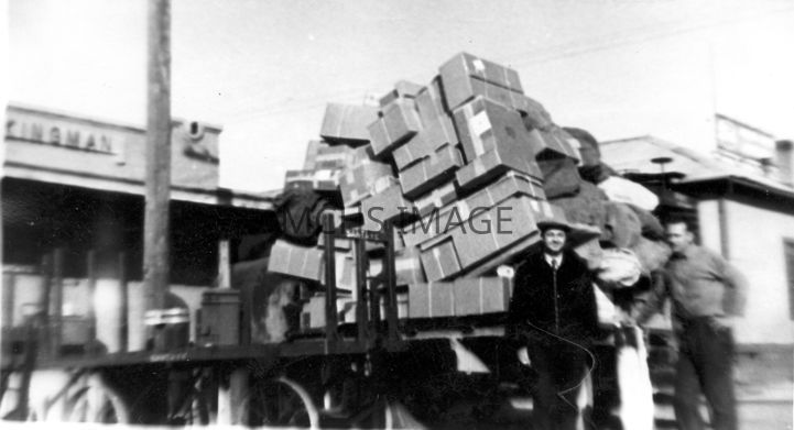Unknown men next to Baggage Cart at Kingman Santa Fe Station - 1925.Collection