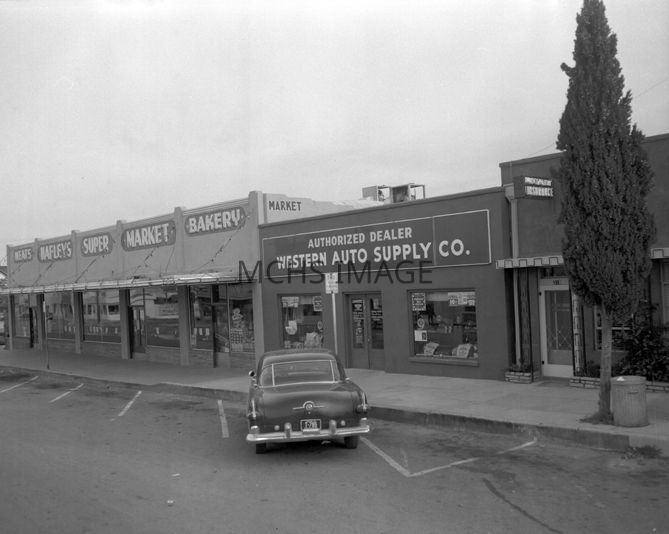 Beale Street June 1956. Hafley's Super Market, Western Auto Supply opened in 1961, Beale Street between Third and Fourth. Kingman, Arizona.Collection