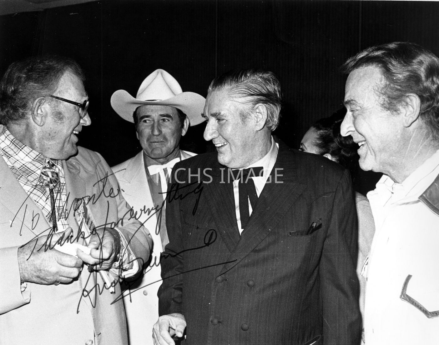Left to right; Andy Devine, Monte Montana, Pat Buttrams, Ralph Edwards.Collection