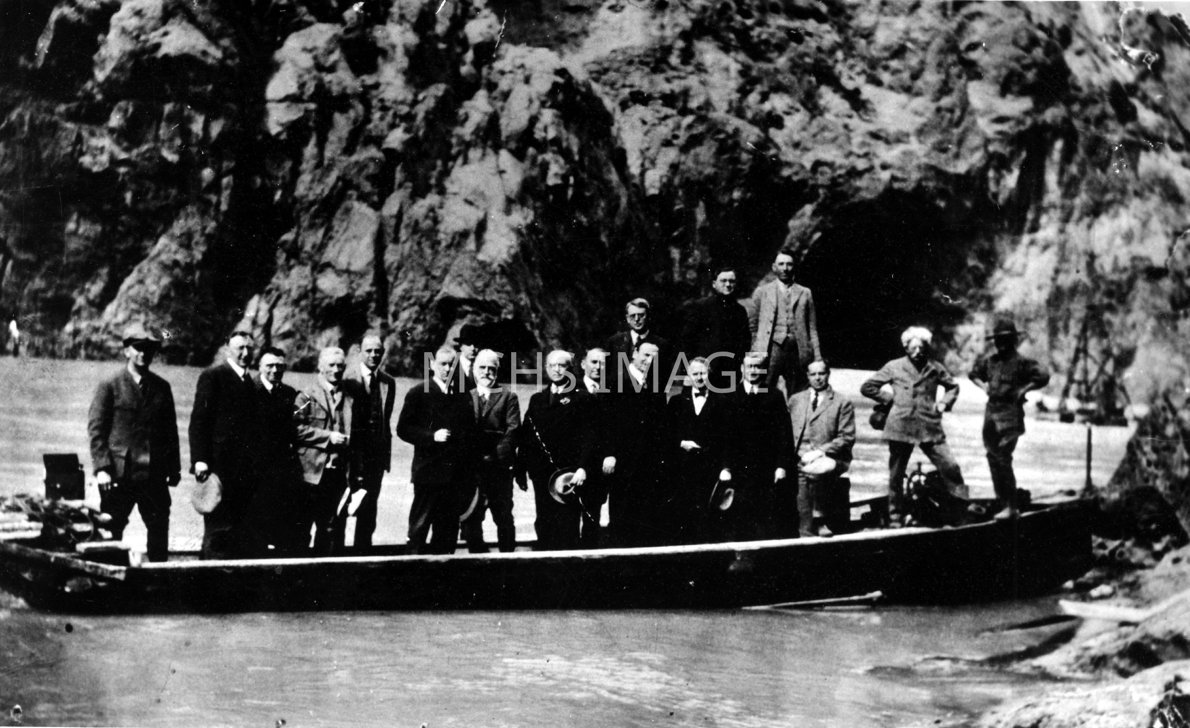 Al Jagerson's 26' tunnel boat; Congressmen visiting Hoover Dam Site