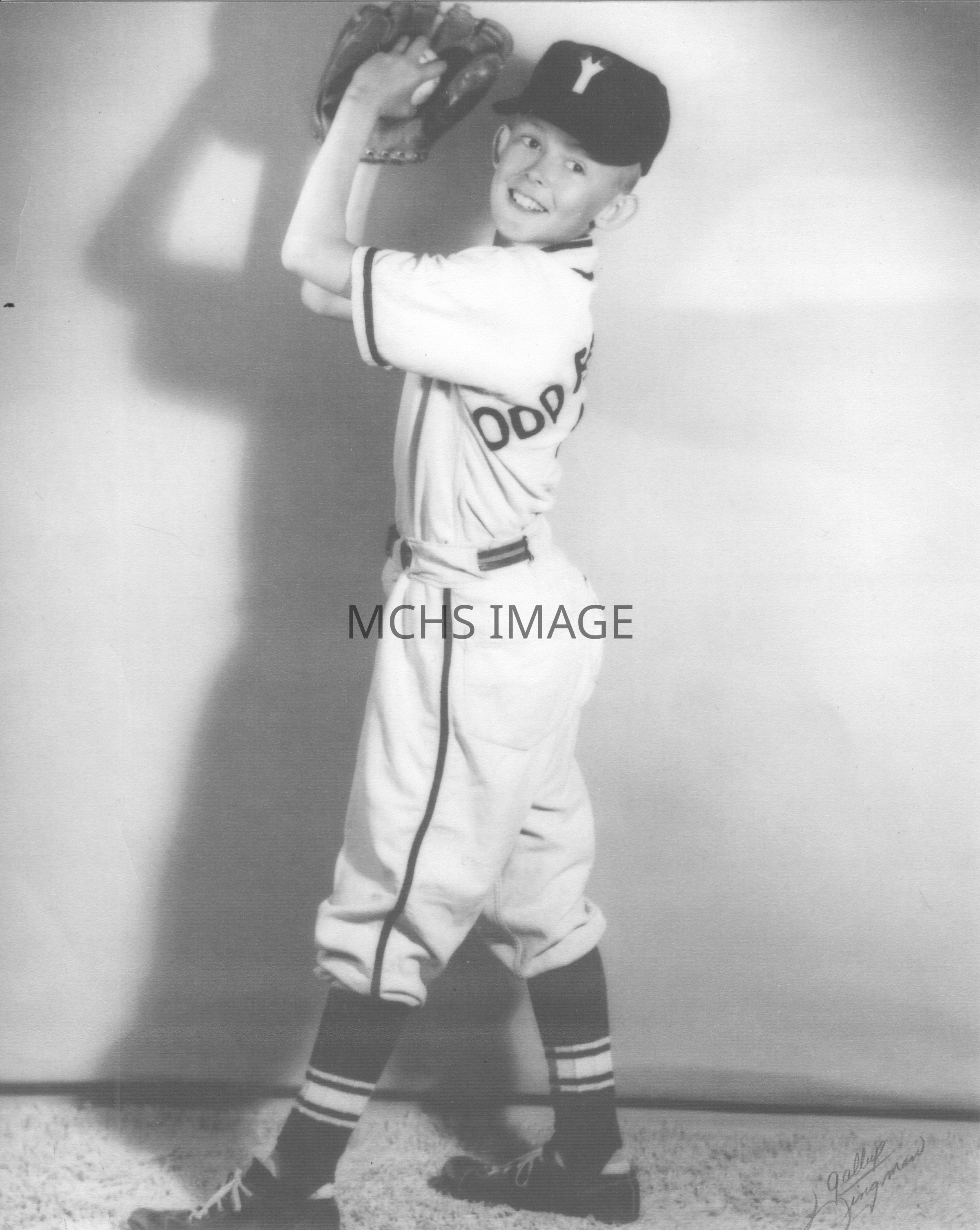 Bob "Boze" Bell, western author, publisher posing in IOOP Yankees little league uniform ca. 1959 Kingman, AZOther Names and Numbers