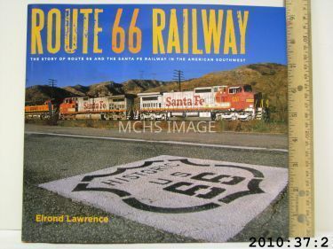 Book, 10 - 1/4" x 9 3/8" in excellent condition. "Route 66 Railway: the story of Route 66 and the Santa Fe Railway in the American Southwest", by Elrond Lawrence. Signed by the author. Copyright 2008.