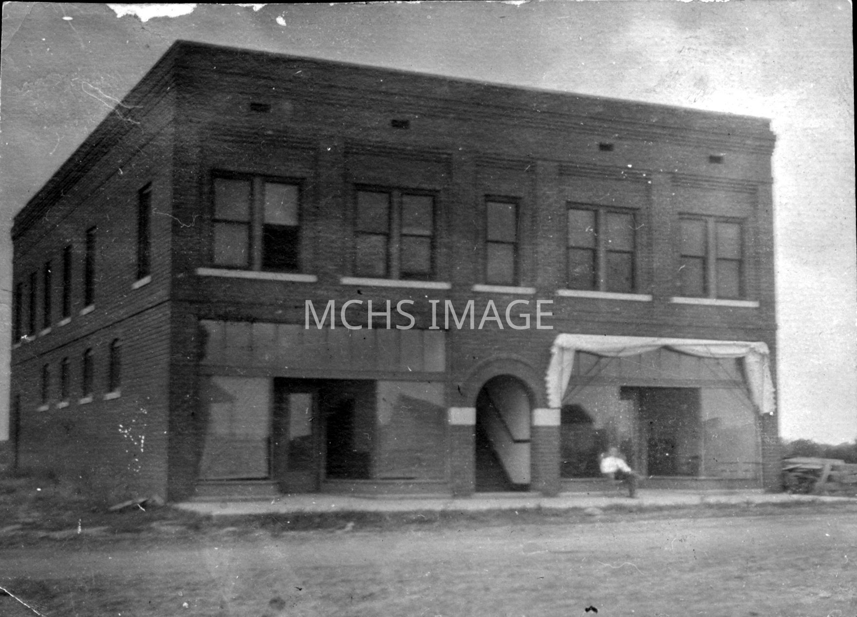 Building on Beale Street between 4th and 5th Street, Two entry doors and stairway in middle of building with man sitting out front, building facing Beale StreetCollection