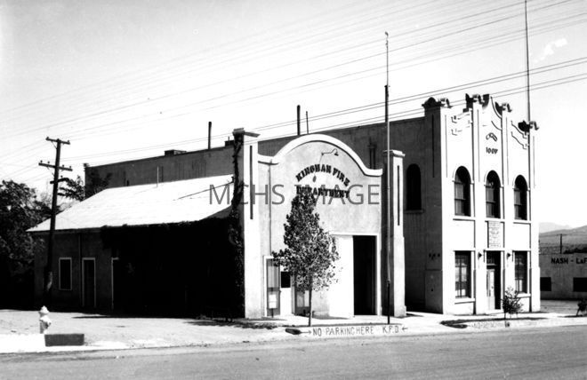Kingman Fire Hall with IOOF Building on the south side, located on 6th Street and Beale Street. Building in background with writing on the side "NASH-LAFAYETTE"Other Names and Numbers