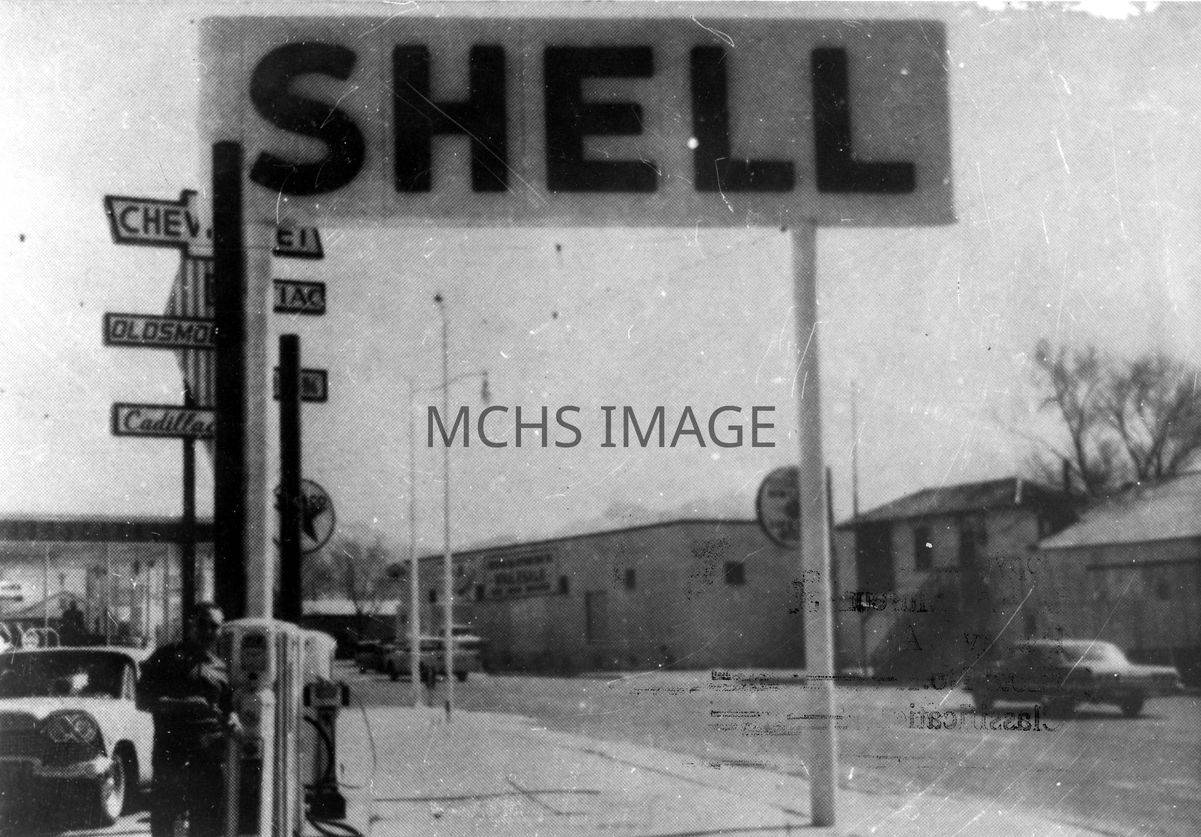 Kimo Shell and Café, 1st street and Andy Devine, (Now Mr. D's) taken in 1950's. Leased by E. J. Charley Mc Carthy.Other Names and Numbers