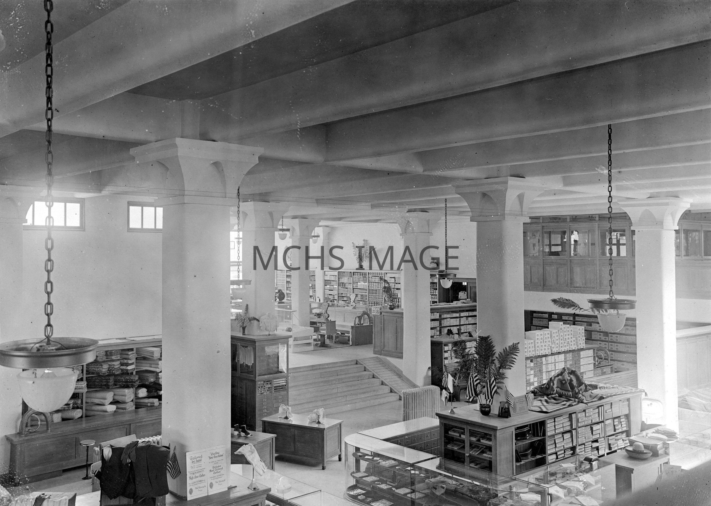 Interior view of dry goods department with stairway leading up to Beale Street side of Central Commercial Company. Reference collection number 2008:40.Collection
