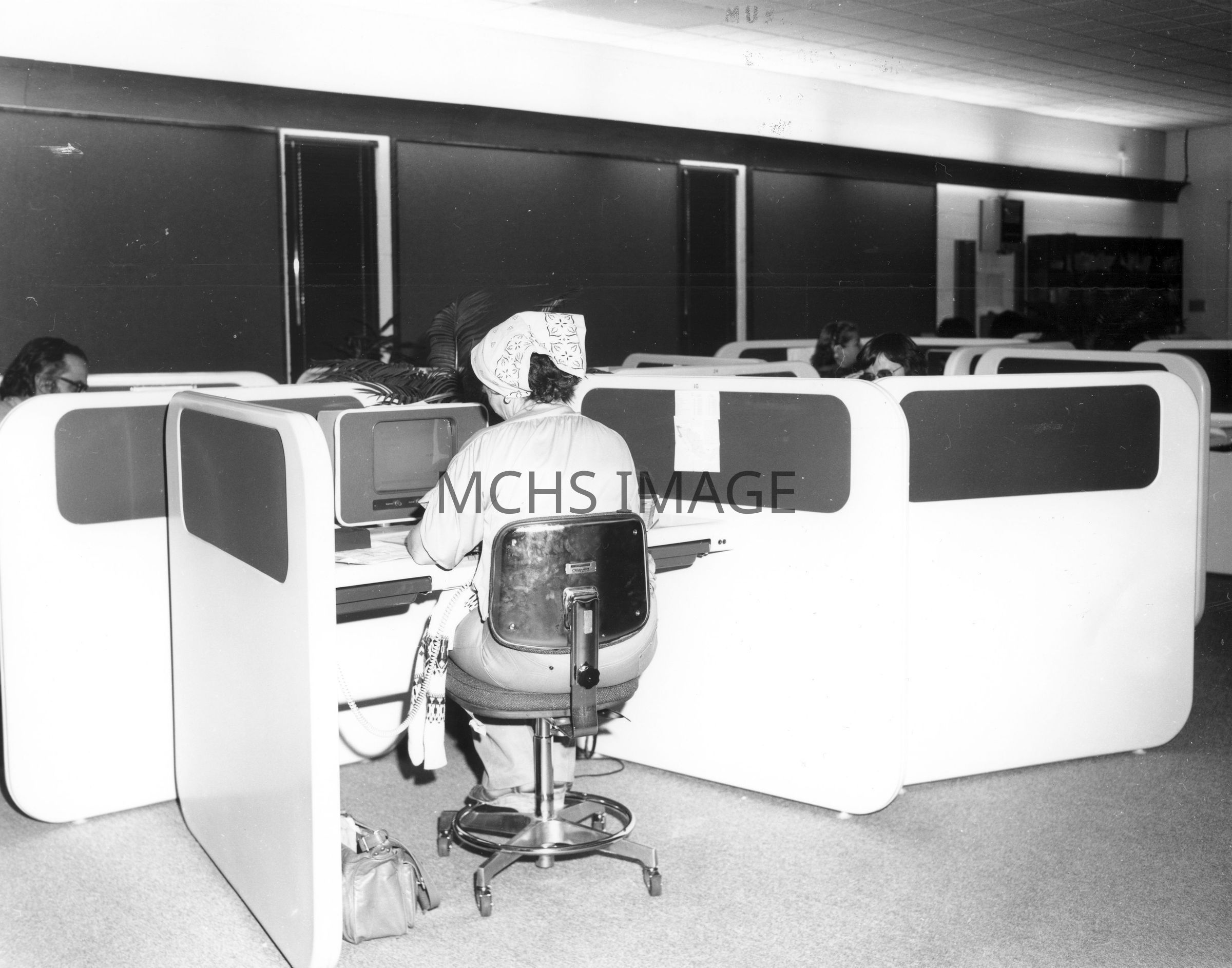 Unknown woman at work station, at Citizens Utilities.