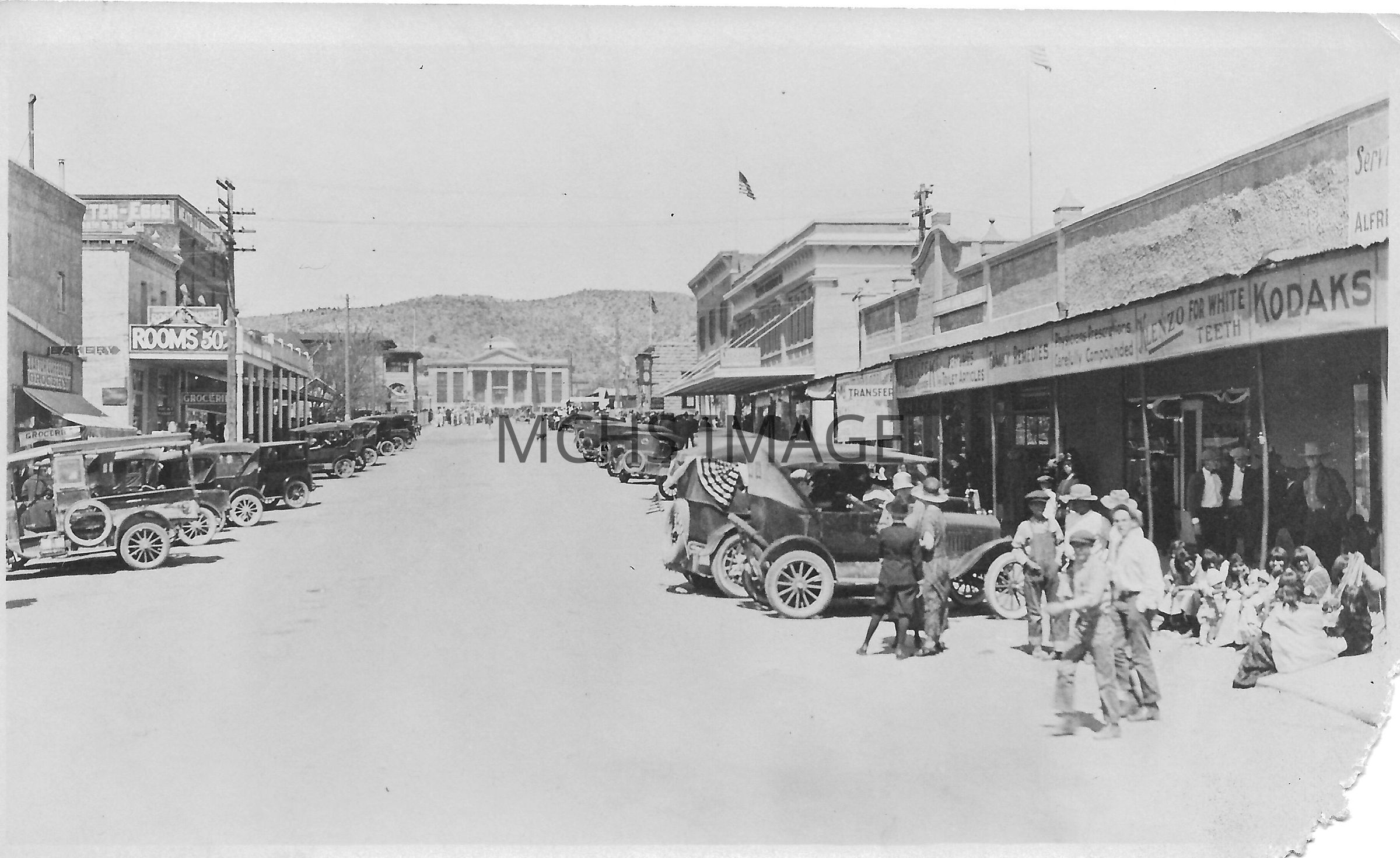 Looking north on 4th street from south of the railroad tracks at the intersection of 4th and Front Street. Front Street later became Andy Devine/Route 66.Other Names and Numbers