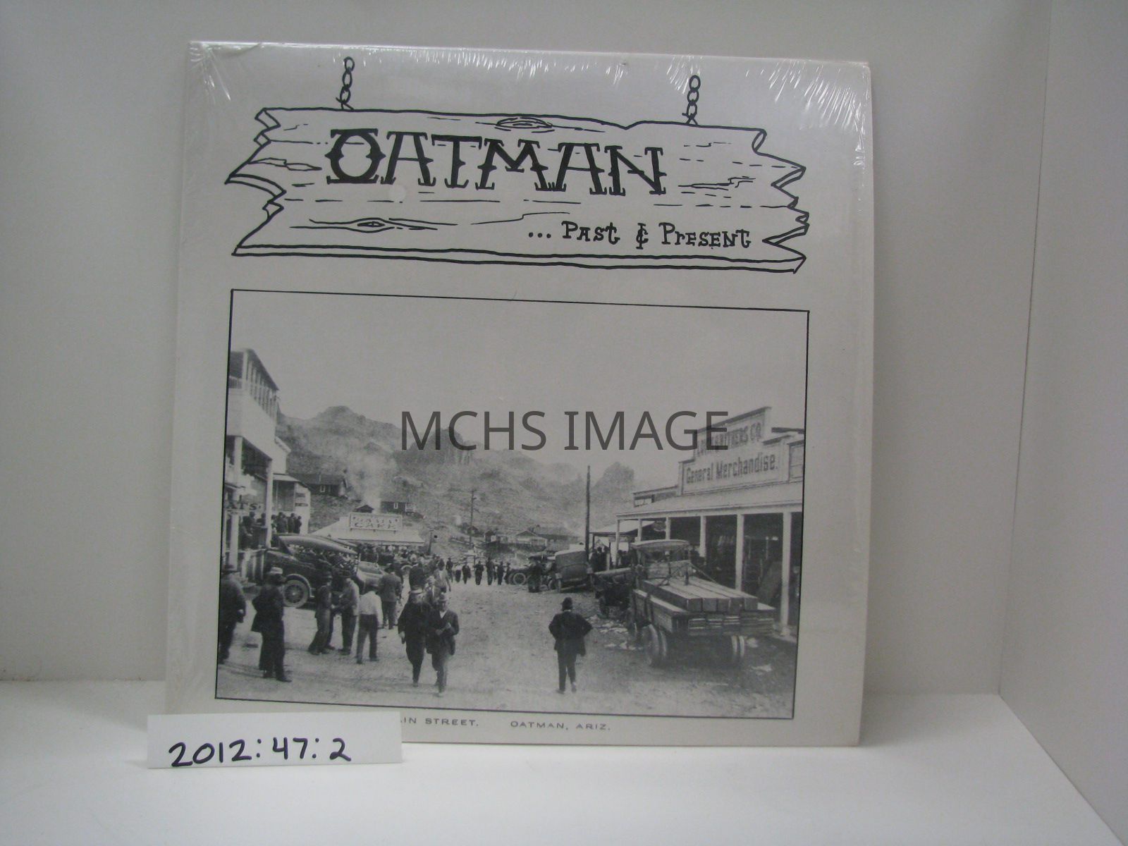 Phonograph record jacket but no record inside. Jacket reads: "Oatman Past & Present”. Photo on front cover of Route 66,( Main Street,) Oatman, Az. Produced by Simondee Recording Co. 1977. Record would be a documentary of the history of Oatman, Az. **NO RECORD INSIDE**