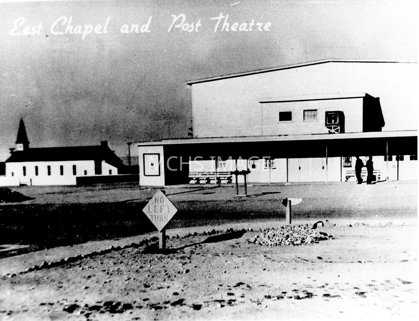 Photo showing the East Chapel, and Post Theatre in the 1940's.Collection