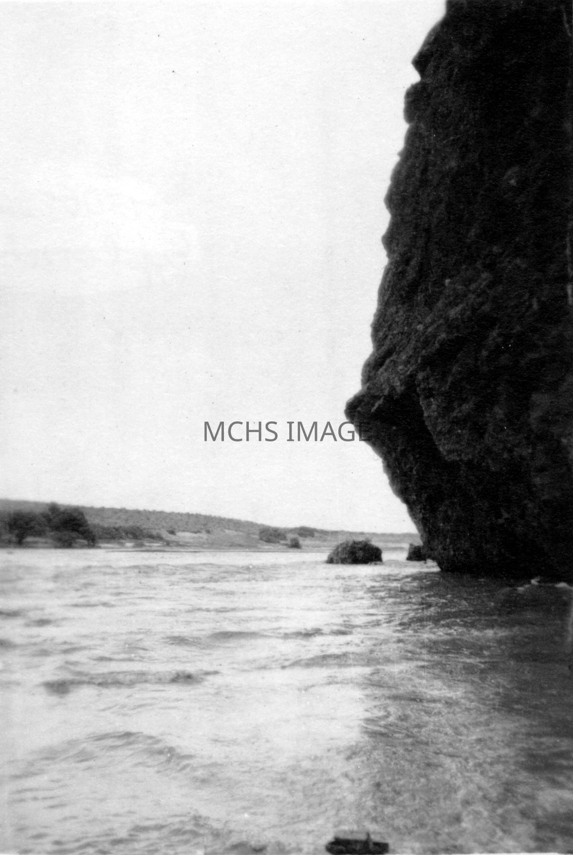 View of Colorado River, small boats in foreground.
