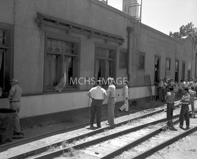 Fire at Harvey House, 21 June 1952. American Legion was meeting at the Harvey House when fire damaged the building.Collection
