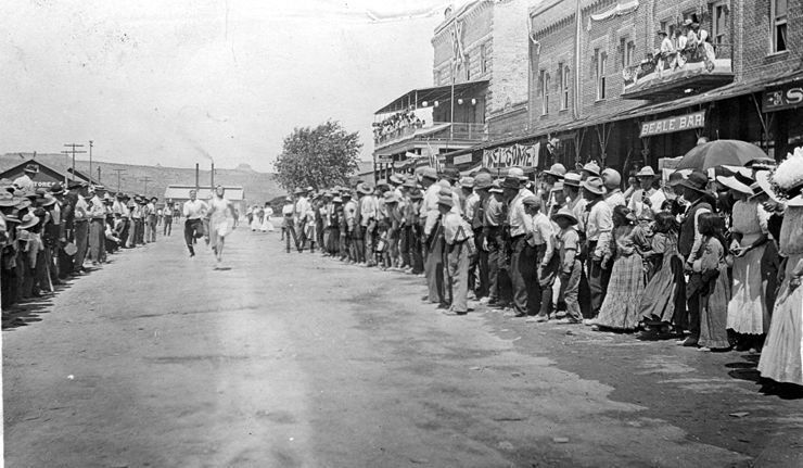 Foot race in downtown Kingman on Front Street in front of the Beale Hotel