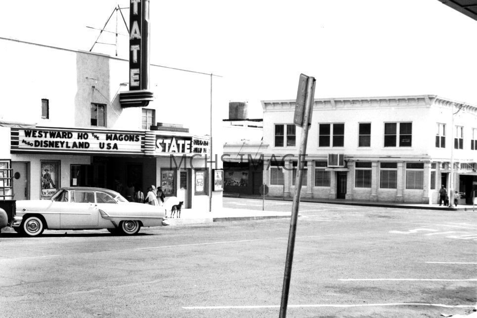 Looking southeast along 4th St. State theater, Central Commercial. Cross street is Beale St.