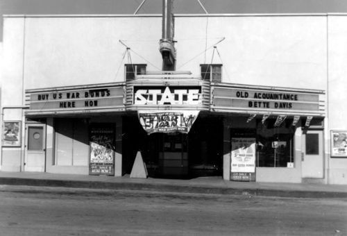 A front view of the State Theater. "Old Acquaintance" starring Bette Davis is featured along with the sale of U S war bonds. NE corner 4th and Beale StreetsCollection