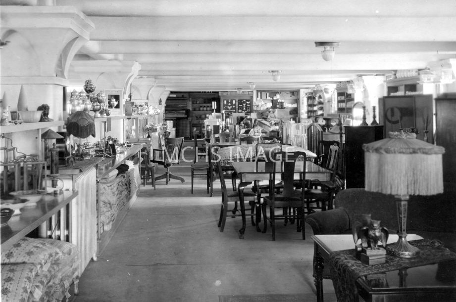 Furniture Dept of Central Commercial. A nice display of tables, chairs, and lamps. The dept was located on the mezzanine, a steam radiator is on the left. Beale StreetCollection