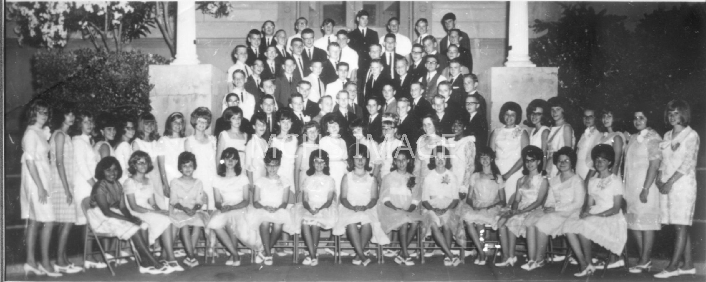 Graduation class of Kingman Junior High.Row 1, L to R: (sitting) Regine Wataname?, Jan Thyregod, Betty Hatchell, Elise Thomas?, Joan Cantwell?, Norma Flowers, (unknown), Joann Todd, Darlene Register?, Debbie May, Barbara Pepitone, Laurie Witt, Kathy McCarthy. Row 2 Linda Petry, Sandra Shaw, Vicki Davenport?, Shirley Grove, Debbie Dunton, Nacia, Chery Lager, LeAnn Heathington, Alene Simon, Kathy Kepner, (unknown), Vicki Raley, Mary Boone?, Mindy Aune, Carol Bender, Marguerite Acton, Sylvia Gonzales?, Julie Waters, Janice Ellerman, Kathy Walsh, Melanie Carter, (unknown), Arlene Shinkle, Karolyn Duckworth. Row 3: Bill Welsh, Wayne Davis, Brent Garrett?, Larry Raley, Lynn Morphew, Bill Masterson, Jim McInroy, David Wright, DoughJohnson. 4th Row: Pat McBrayer, David Smith, Bob Laulo, Mike Gross, Mark Skinner, Jim Butler, Clarence Homer, Doug Paulsen. 5th Row: Jack Trahan, (unknown), Sam Yarbrough, Jim Cassidy, John Coffman, Marty O'Neill, (unknown), James Julian. 6th Row: Ken Byers, unknown, Gray Grantham, Wayne McClintock?, Robert Hansen?, Ross Rhodes, Charles Ware. 7th Row: Doug ?, Mike Paul, Gary Simpson, Rod Ward, unknown, Keith Carter, Robin Mounger. 8th Row: Joe Shaffer?, Kim Knutson, Ron Barnes?, Bob White, David Kidwell, Greg St. George?, unknownOther Names and Numbers