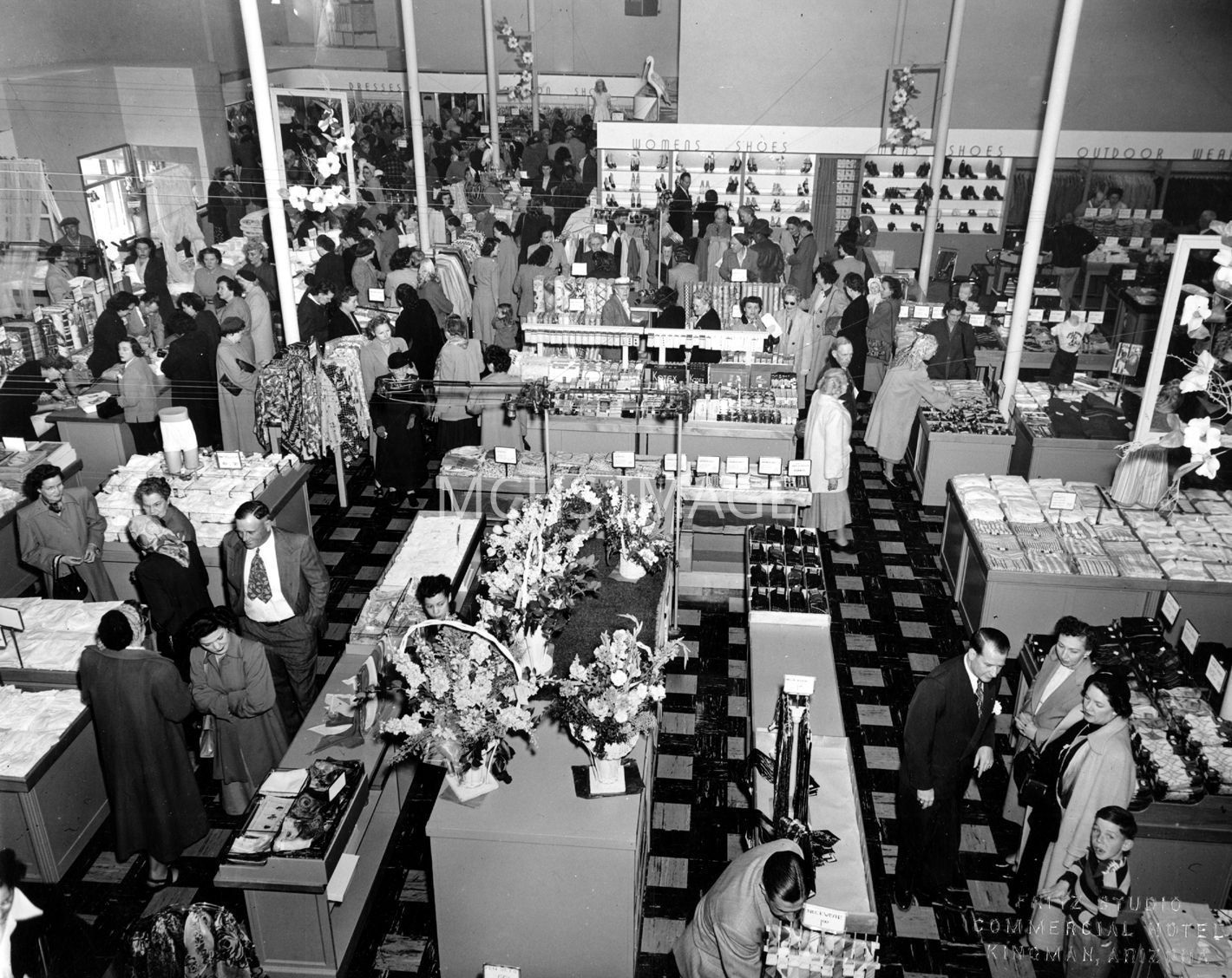 The opening of the new J.C. Penneys Store, winter of 1951. Many people are milling about, the women are wearing dresses. 4th and Beale St.Collection