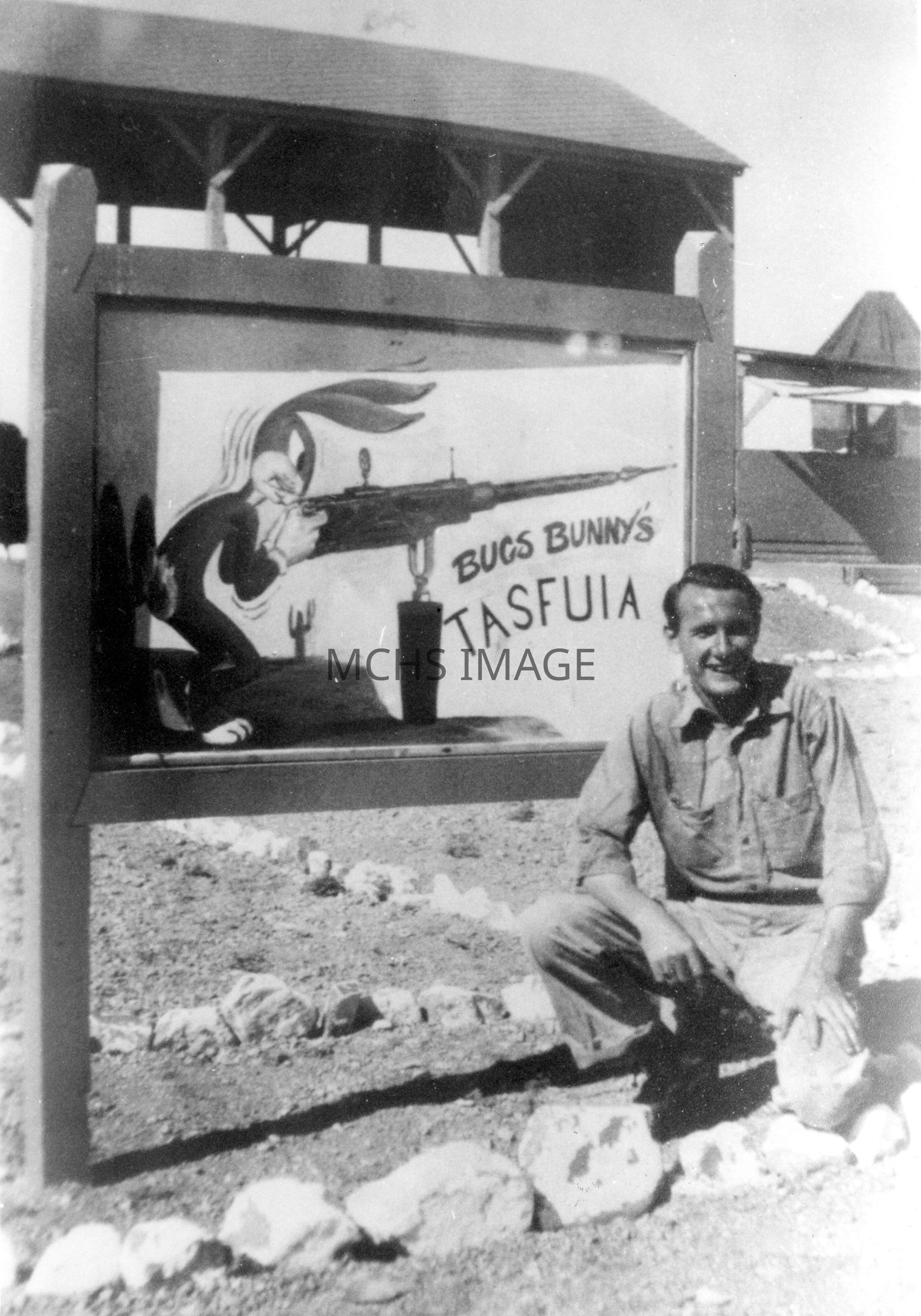 Emmert Michaels at entrance to Gunnery School 1943.