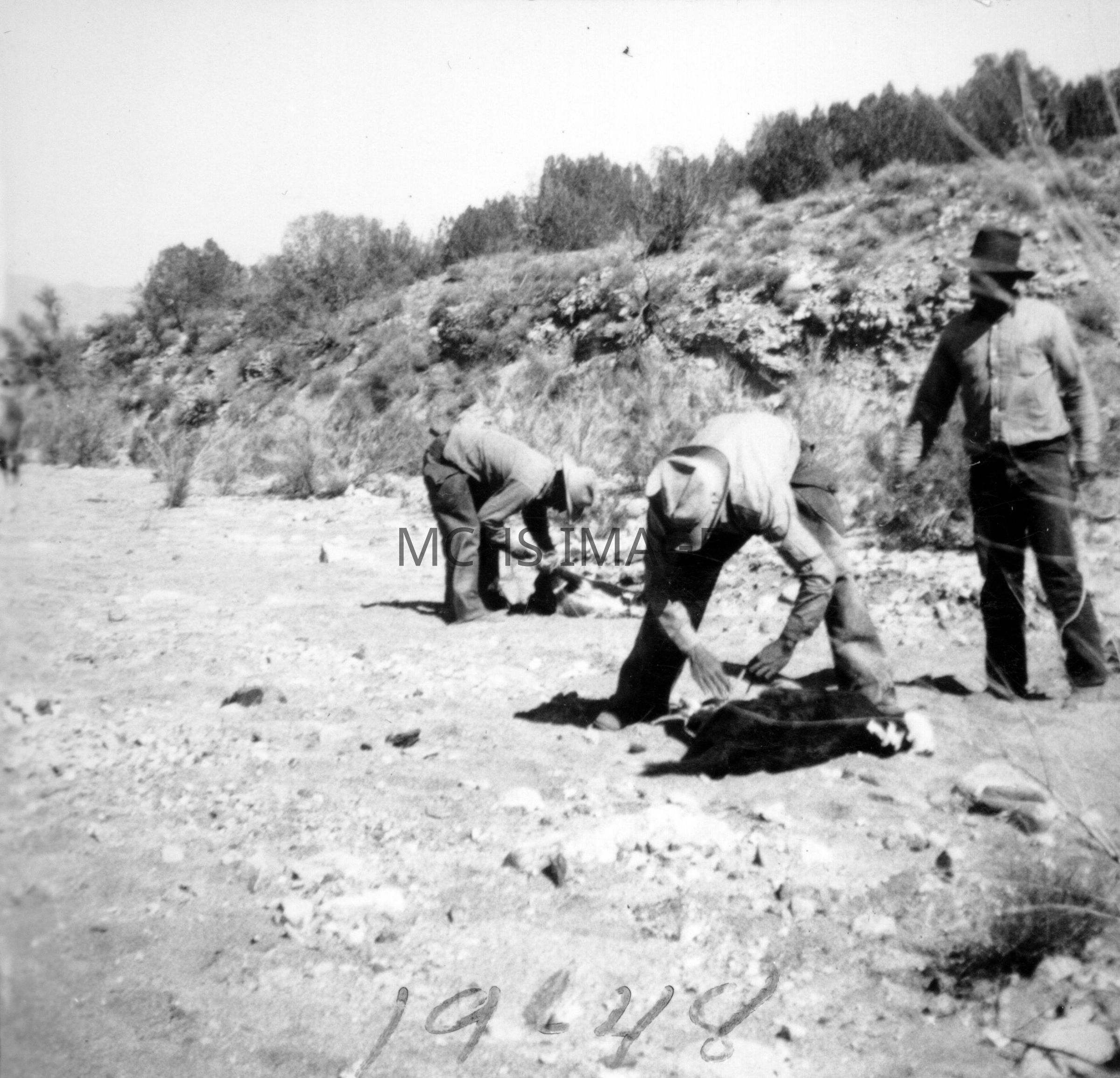 Cowboys branding calves