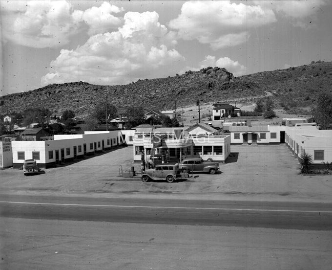 Gypsy Garden Auto Court and gas station is in the eastern section of Kingman proper on Andy Devine Avenue (Highway 66). Probably erected in the early 1930's, the proprietors were Mr. & Mrs. Arthur Jones. The burgeoning tourist trade on Highway 66 necessitated a modernization of the establishment's name to "The Coronado Auto Court" sometime between 1949 and 1951. Sam Marbell was a proprietor of the Court during the 1950's.Collection
