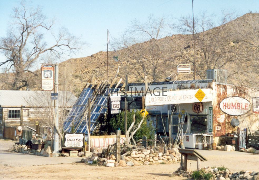 Old Route 66 Visitor Center, Old building with rock in foregrounds, Signs on building"Route 66-Old Route 66 Visitor Center, HumbleCollection