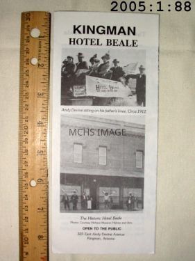 Handbill describing the Beale Hotel and noting the connection to Andy Devine.