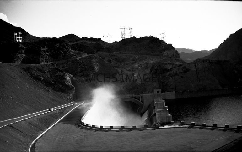 Hoover Dam, spillway and road.