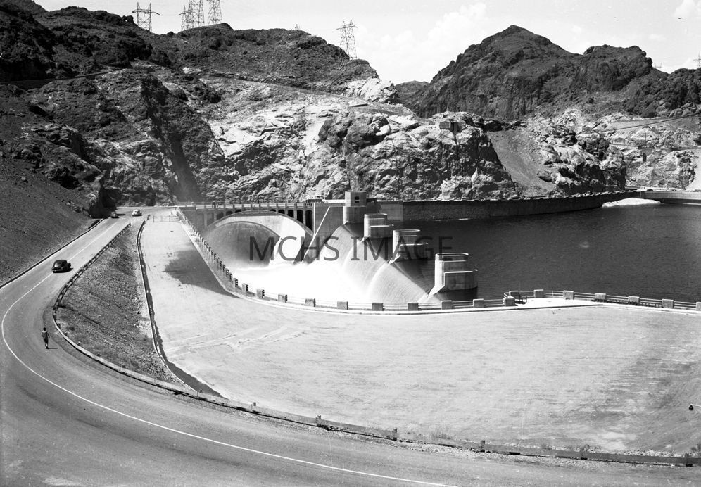 Hoover Dam, water pouring over spillway