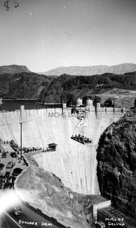 Hoover Dam. Dignitaries over dam.