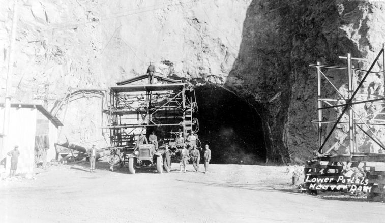 Hoover Dam. Lower portal during construction.