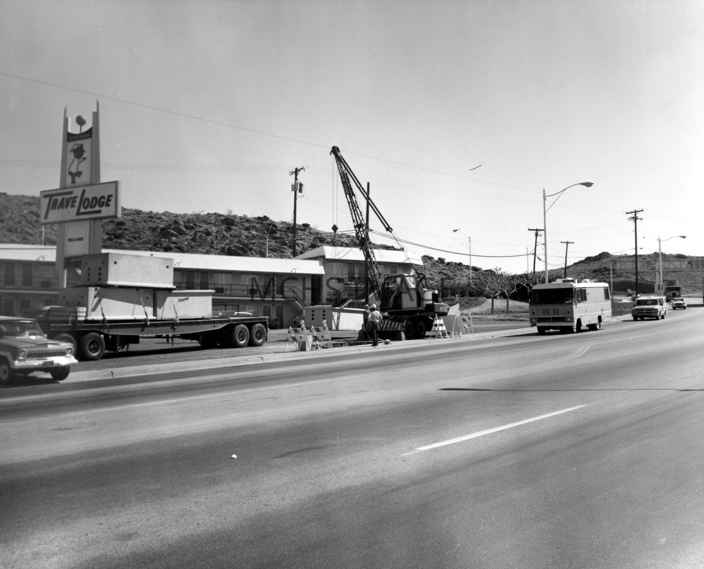 Citizen's truck and crew installing Hilltop Duct system in front of Travelodge on Route 66.Collection