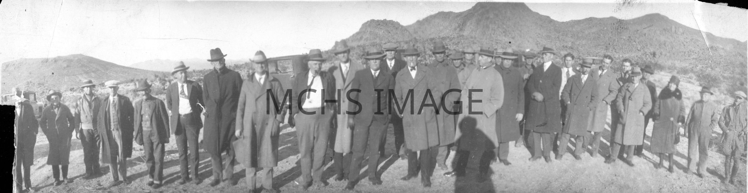 Investers in Katherine Mine. Ed A Sharf, Kingman Arizona, Brokerage at Beal Hotel Lobby. Also telegraph for stock Market. Unknown men in photo.Collection
