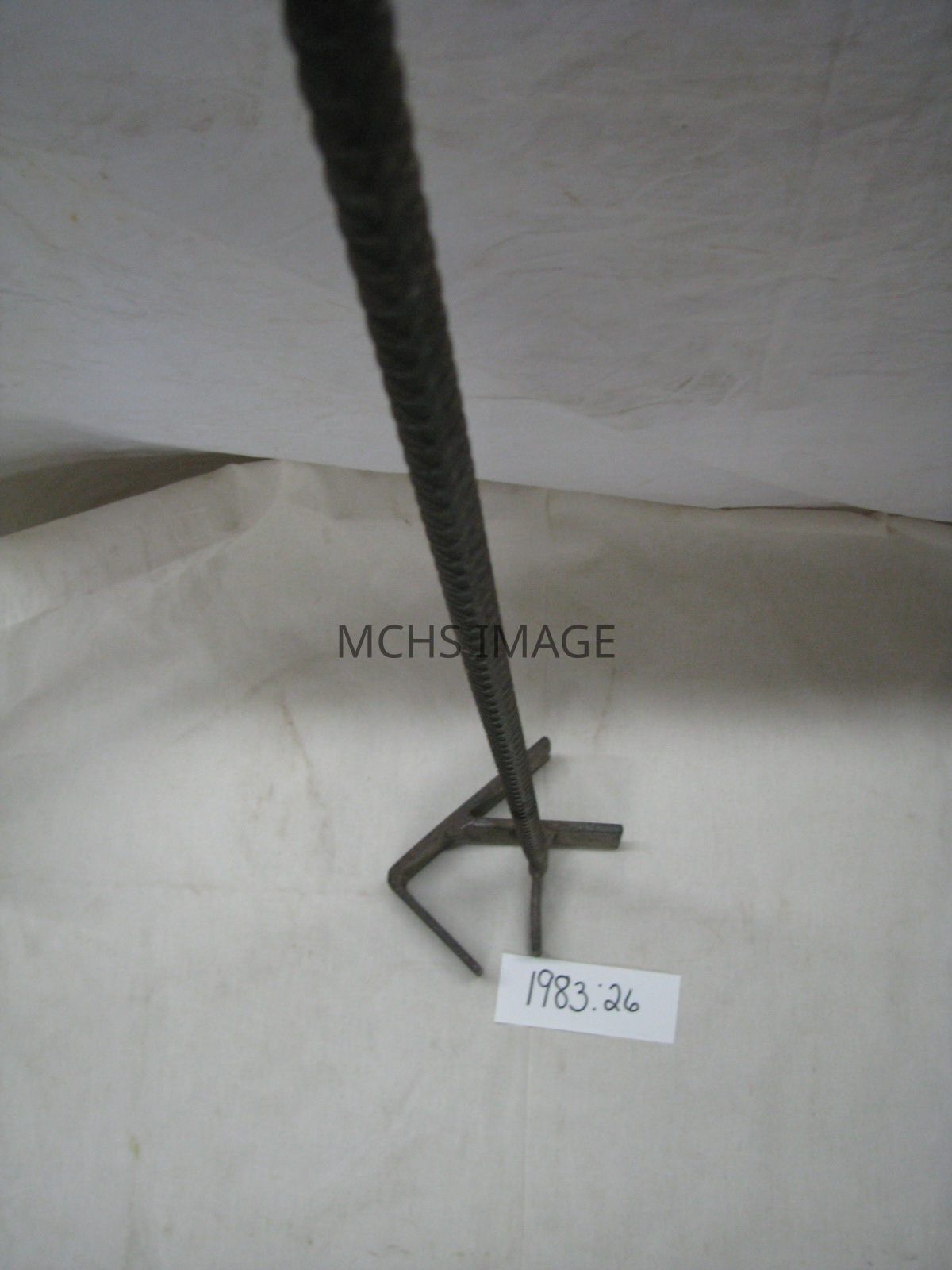 Branding iron is 32" long, ring is 2 - 3/4", brand is 5" x 3 - 1/2", handle and ring rebar. Issued to Levi & Koshland.
