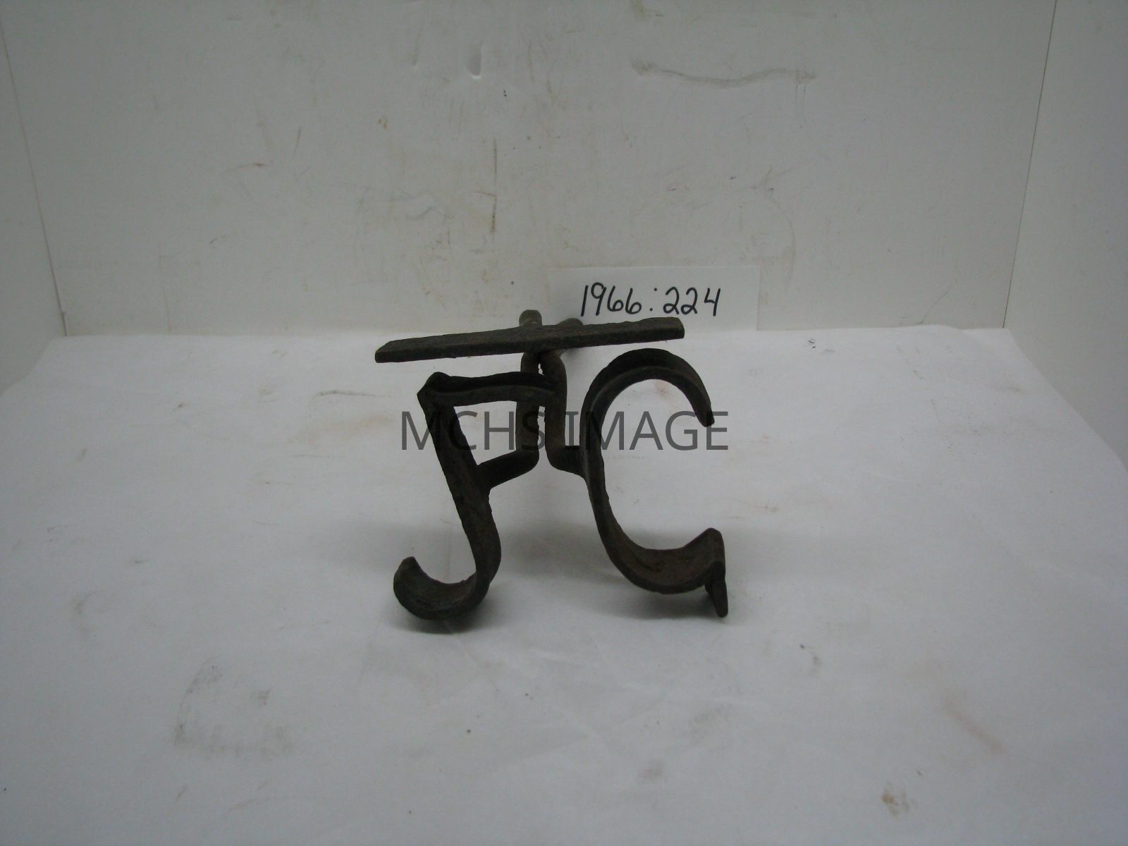 Branding iron, overall length 9 - 5/8", width on top 4", letter width 4 - 1/2" Only the branding iron's characters and yoke remain together, the handle, of unknown length and design has been broken off. The brand is as follows: "2C" Exhibits much use.