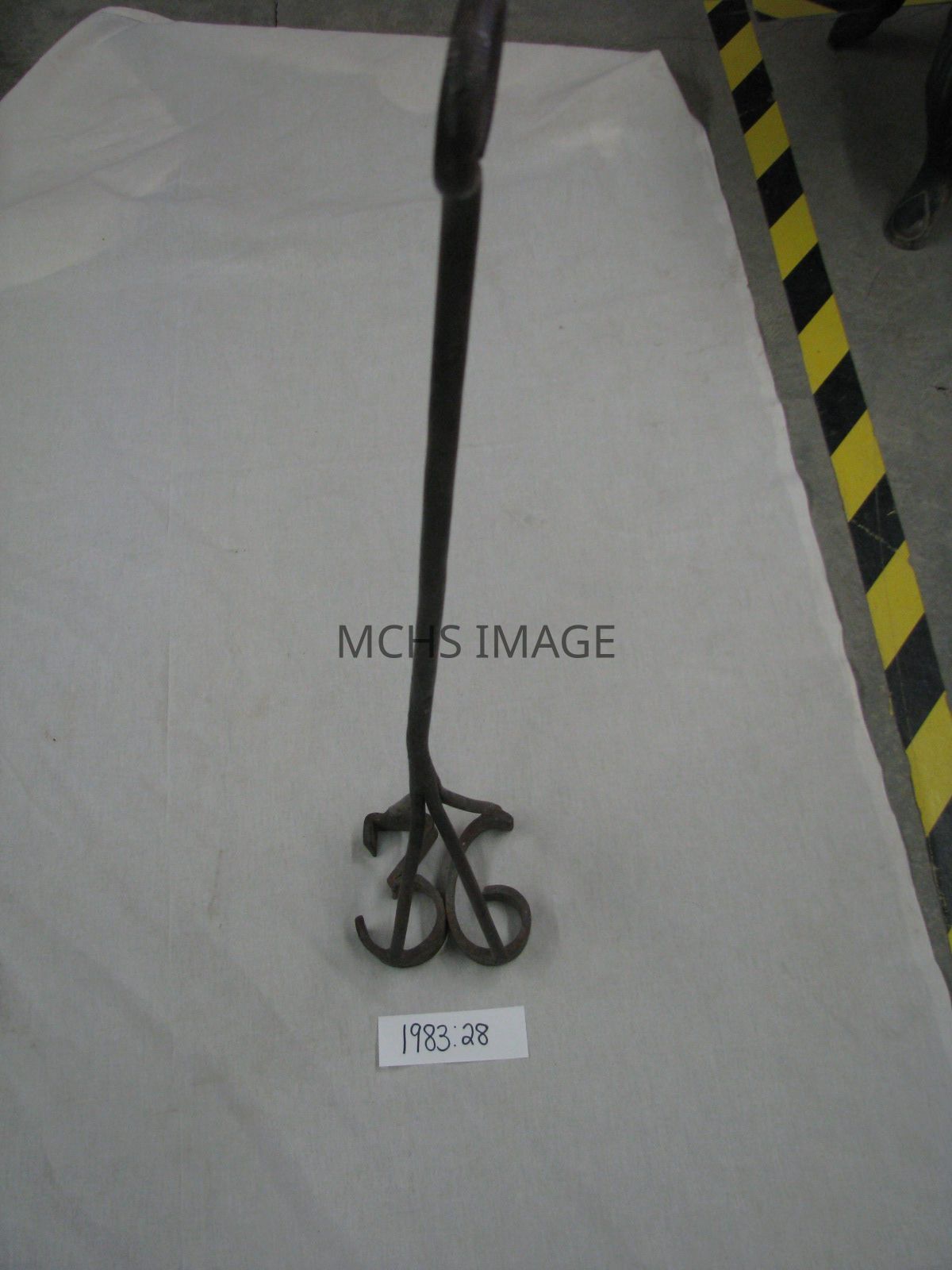 Branding iron is 30 -3/4" long, ring is 2 -3/4" part of ring has been threaded, brand is 5" x 5".
