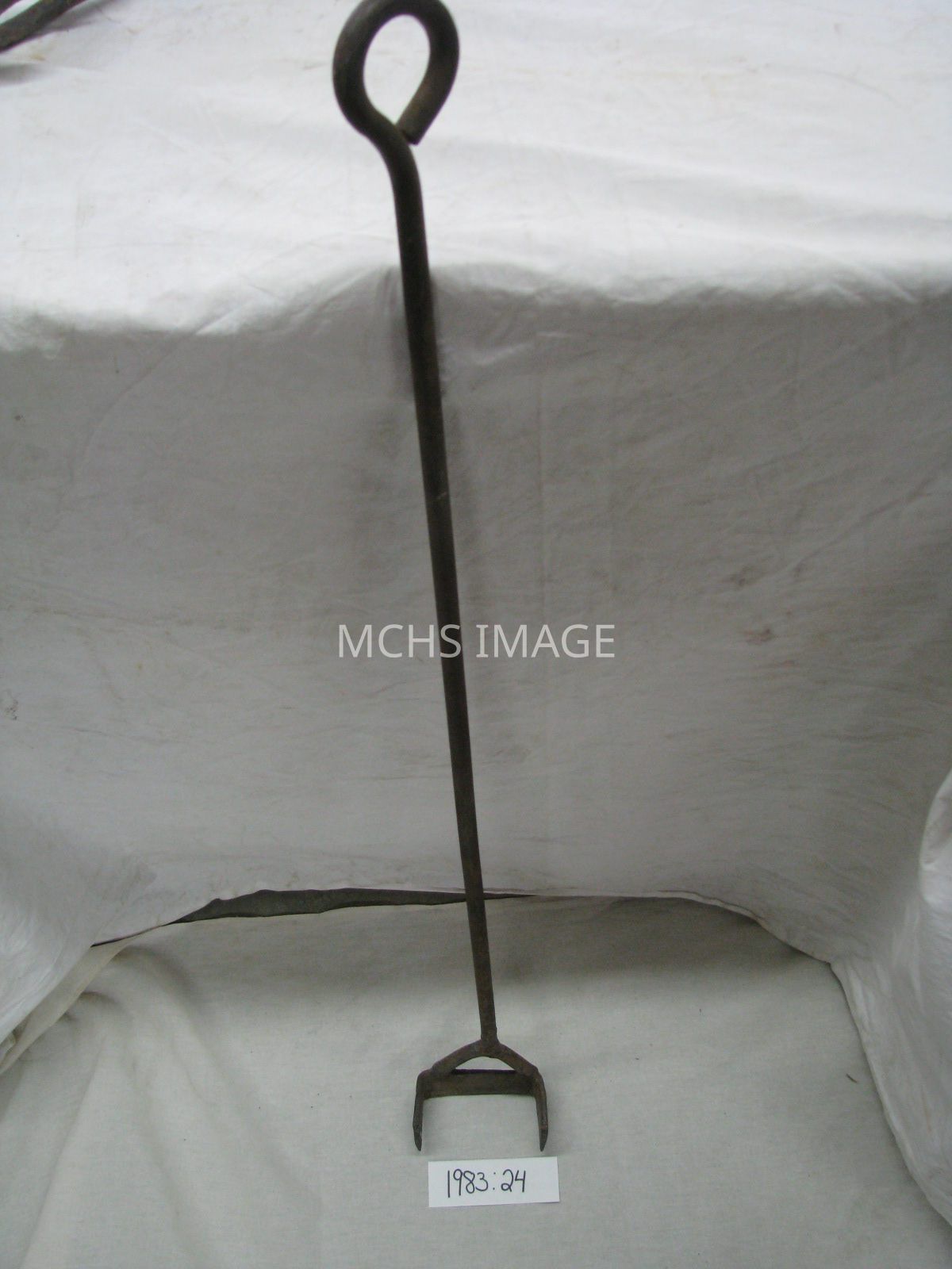 Issued to Albert Bojorquez, Bullhead City, Arizona, found in 1953 Brand Book (page 171). Branding iron is 36 -3/4" long, ring is 2 -1/2", brand is 4 -1/4" x 2".