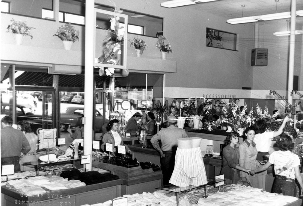 The new J.C. Penneys Store, note the money changers leading to the upstairs office. There are many baskets of flowers. 4th and Beale St.Collection