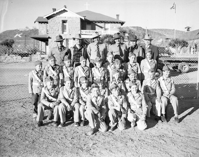 Junior Hi-Way Patrol taken in front of St. Mary's School on 1st October 1947.Collection