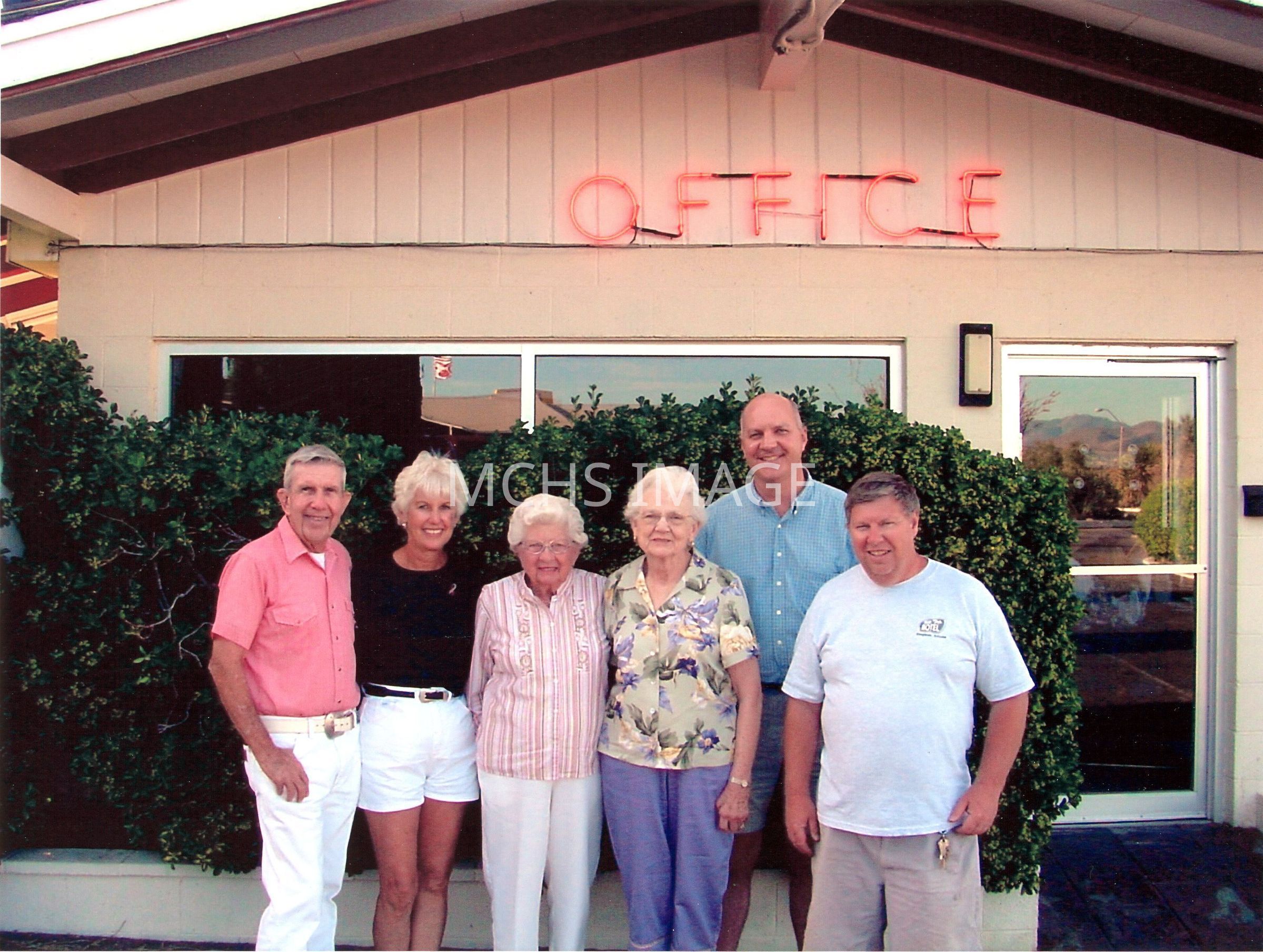 Kingman Motel owners (LtoR) Bob Budd, Eileen Budd, Mickey Thomas ( owner of Roping Cowboy Motel), Marge Gehrke, Scott Gehrke and Dennis Schroeder.Collection
