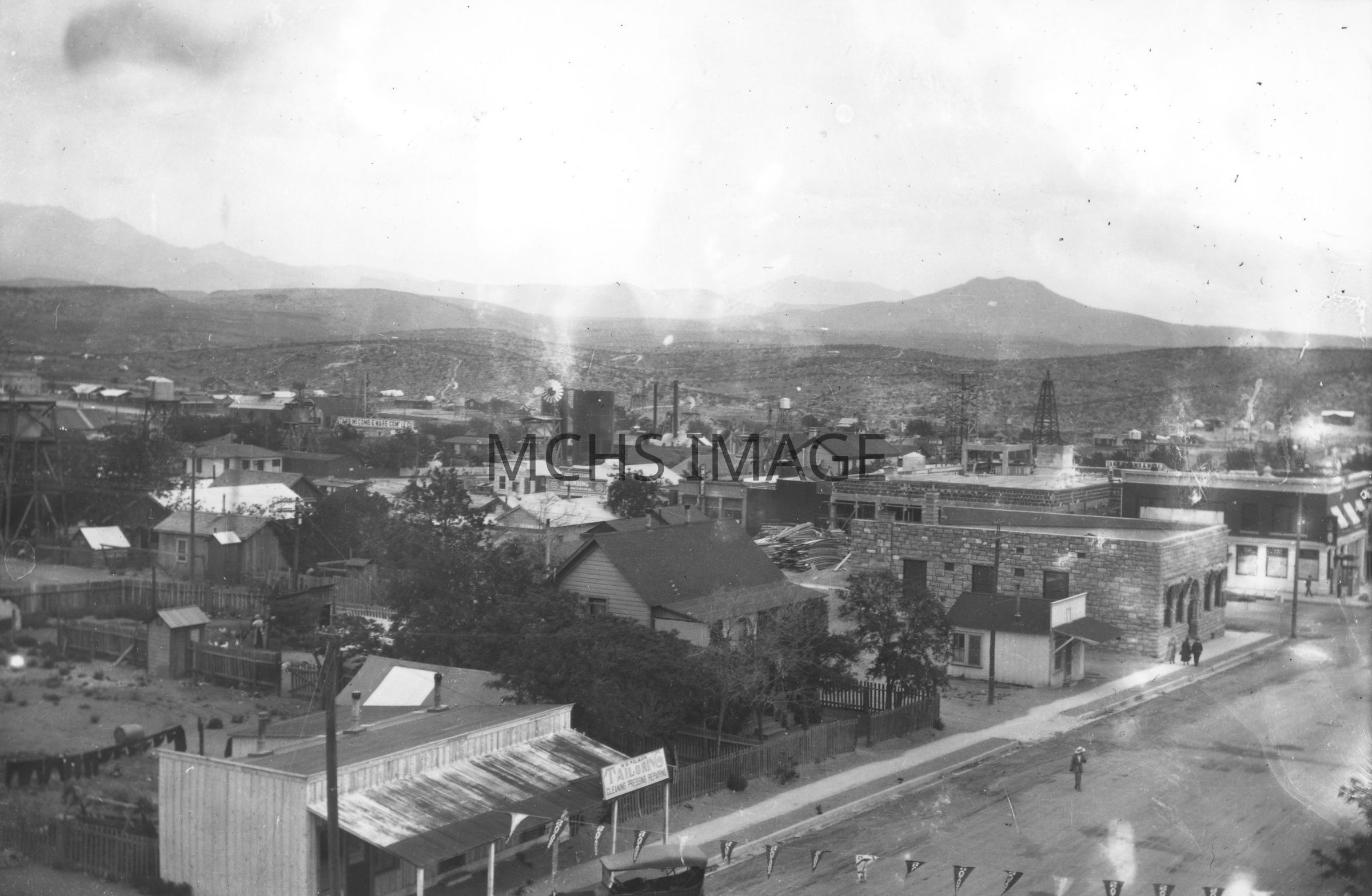 Photo taken looking South East. Fourth Street, with Bank on Corner of 4th and Beale.