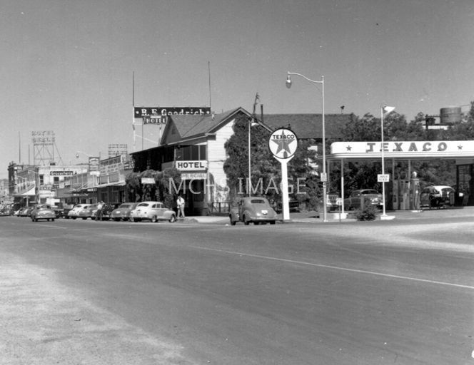 Looking West on Andy Devine, trees and vines surround the Commercial Hotel. The Powerhouse is in the distance.Collection