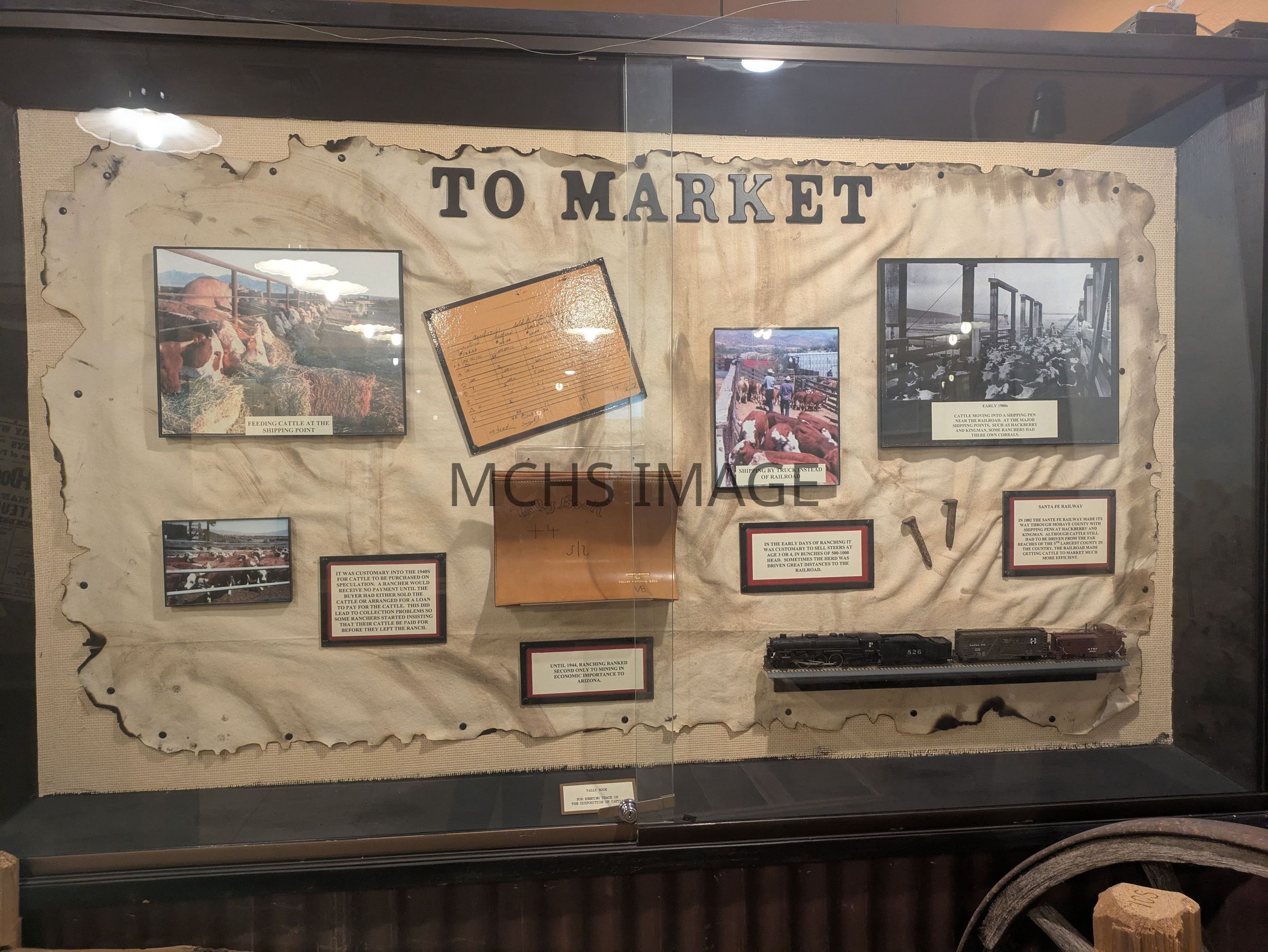 Display in the Ranching exhibit in the museum on how steer would be marketed, tallied, and transported.