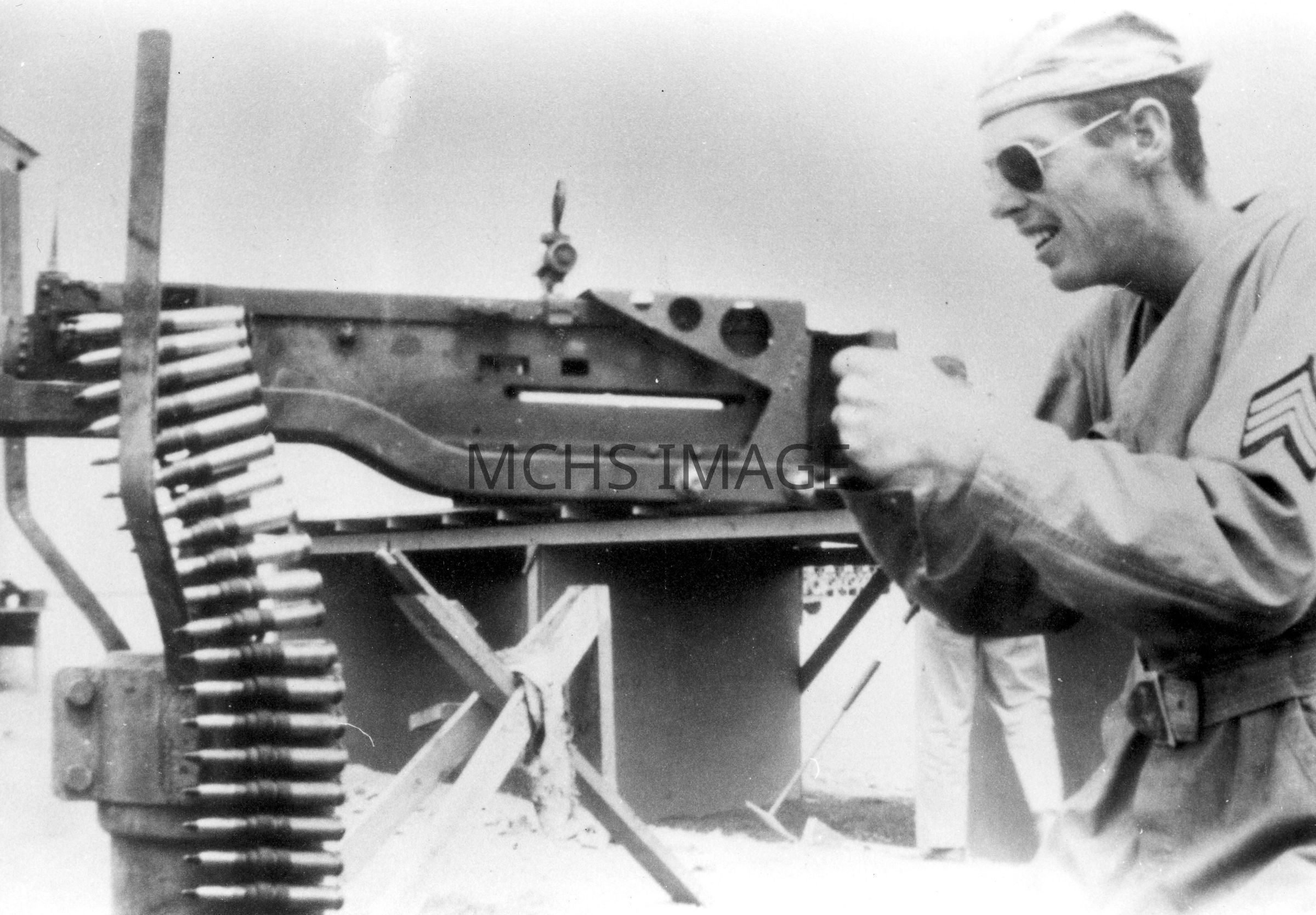 Soldier at 50 caliber Machine gun, North gunnery range. 1943