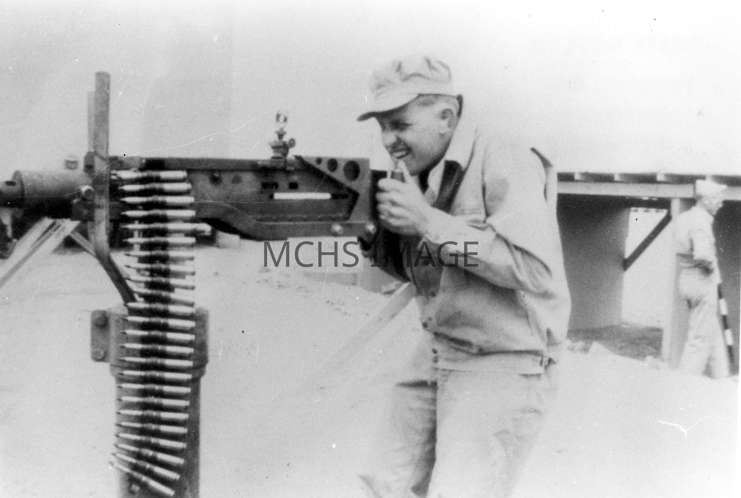 Emmert Michaels at the 50 caliber maching gun. North Gunnery Range.